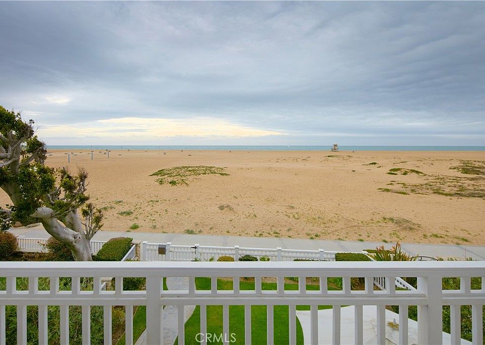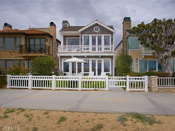 The charm of Cape Cod meets the allure of Newport Beach at this elegant oceanfront residence on the Balboa Peninsula. Step onto the sand from your spacious front patio, and enjoy panoramic ocean, beach and sunset views from the primary suite’s balcony. A shingled-cottage exterior creates a welcoming ambiance at the seaside home, which showcases a seamless open-concept main level that opens to the front patio and features a living room with fireplace and built-in cabinetry, a spacious dining room, and a custom kitchen with black stone countertops, a hand-carved island with butcher-block top, white bead-board cabinetry with illuminated glass uppers, a pantry with a custom French door, and a suite of top-of-the-line appliances from Sub-Zero, Wolf and Dacor. Wood flooring graces the entire residence and complements impeccably crafted millwork, including crown molding, wainscoting and custom vanities. Upscale nautical elements complement the beachfront setting, and an elegant staircase, skylights, custom tilework, and premium paint and wall treatments embellish throughout. Three ensuite bedrooms and three- and one-half baths are revealed in a two-level floorplan of approximately 2,583 square feet. All bedrooms are crowned with vaulted ceilings, and the ocean-view primary suite presents a sitting area with fireplace, two walk-in closets with furniture-caliber built-ins, and an opulent bath with separate vanities, a separate shower and a jetted tub. The home’s location is without compare. Not only does it open directly to the beach, it is just a few blocks from the Balboa Fun Zone, the Balboa Island ferry terminal, Peninsula Park and the Balboa Pier. Nationally acclaimed schools serve the community, and Fashion Island, Newport Coast, Crystal Cove, Corona del Mar and Laguna Beach are enviably convenient.