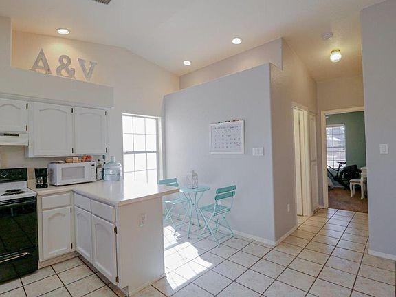 - Kitchen Featrs: Tile Flooring, Solid-Surface Countertops, Vaulted/Elevated Ceiling, Refrigerator, Electric Range/Oven