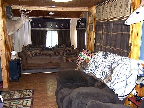 A private oasis in the middle of thousands of acres of state land. Close to four major lakes, with hunting and trails out the door. This low maintenance cabin on 7.56 wooded acres has had numerous updates in recent years, including new metal pole barn, pellet stove, S.S. appliances, newer septic system, 5'' well and several storage sheds - one with electric and water for fish cleaning station. Interior is mostly knotty pine with wood laminate flooring, carpet in bedroom. Kitchen features gas stove and numerous cabinets. A special feature for hunters is a custom deer blind finished in knotty pine, insulated, and built with safe, permanent steps. The acreage backs up to state land and is teeming with wildlife. The main driveway is fenced and gated, and a second drive services the spacious new pole barn. This property has been meticulously maintained by the owners.