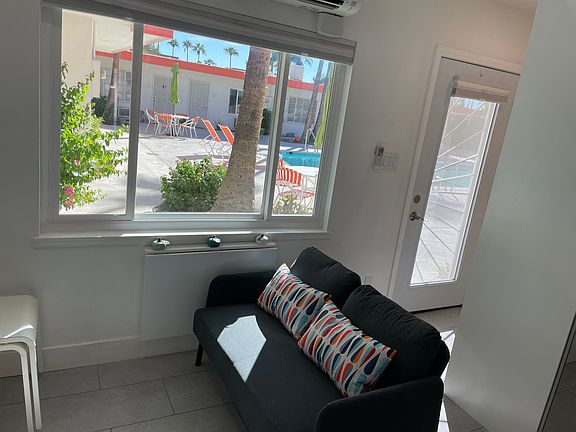 Mid-Century Modern Gem, with all utilities included in price. Completely remodeled with new queen size bed and new sofa. Stunning mountain view from patio. Located in the beautiful Uptown district. Great restaurants and public transportation one block away. Ten minute walk to downtown Palm Springs. Yearly lease with all utilities included. Washer and dryer on property and free at this time. $175 non-refundable cleaning fee. $400 non-refundable pet fee Smoking us strictly prohibited. It is the tenant's responsibility to replace anything lost or broken items in the unit. Examples are glassware and plates, Duvet covers.