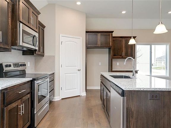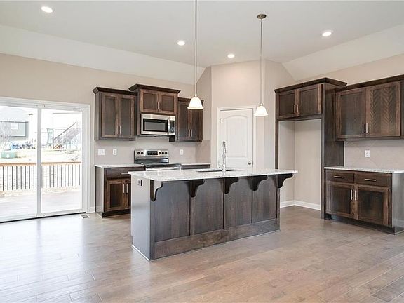MOVE IN READY! Virtual tours are now available.The MIDLAND plan by award winning Summit Homes. Modern split w/ open great room/kitchen/dining for the whole family. Large island w/ bar stool space & walk-in pantry. Generous sized master w/spacious bath & walk-in closet. Laundryrooml with a folding table! Bonus great room in finished LL with a closet and egress window and 1/2 bathroom. Amenities, treed walking trails, pool w/ cabana bathrooms, splash pool for kids, minutes away from Raymore's newest shopping.