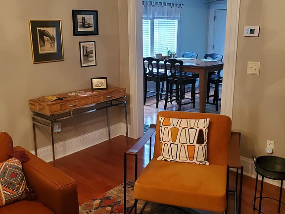 This charming bungalow is located in the Madison Historic District. The Ohio River is just 2 blocks south, and Madison's downtown district is 4 blocks away with its quaint shops, wineries & restaurants. The house is fully furnished, including a fully equipped kitchen; all appliances, including a washer & dryer; outdoor furniture; and bedroom/bathroom linens. There is a living room, kitchen/dining area, bedroom and full bathroom downstairs and a bedroom and full bathroom upstairs. The back yard is fenced and private furnished with an outdoor table & chairs and a love seat and chair. The front porch also has a table and two chairs. The house is tastefully decorated and offers a comfortable living space. There is on-street parking. First months rent plus deposit due upon leasing. This is a short-term lease; the house is available January, February, March and April 2023. All utilities, including water/trash, heat, electric, and internet are included.