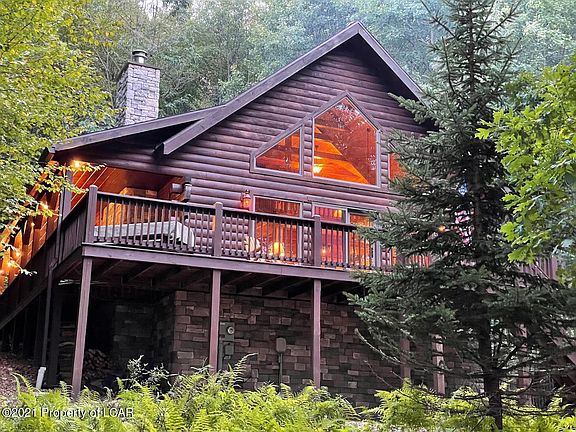LOOKING FOR A SECLUDED LOG HOME TO RETREAT TO ,THIS IS THE HOME FOR YOU! NESTLED IN THE BLUE MOUNTAINS OF PA, IN THE PRIVATE GATED COMMUNITY OF EAGLE ROCK RESORT, THIS IS A LOG HOME ENTHUSIASTS DREAM HOME! This well crafted home, is turn key with quality furnishings , including a log queen master bed ,and end table . Enjoy sitting around the upgraded Kozy Heat fireplace, on a chilly night!