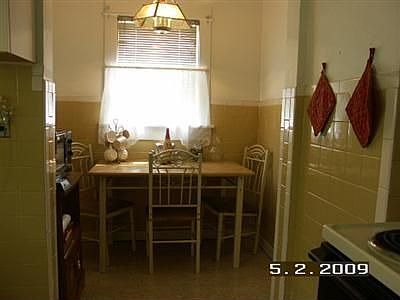 Nice, clean house. Estate sale. Sold as is, rely on own inspections. Full basement 390 SF with washer/dryer hook-up and with lots of storage. Large 130 SF open porch for your relaxing summer night. 1-Car garage, 2 bedrooms, master bedroom has ceiling fan and extra room for nursery or office. Full bathroom boasts 9x5.5 ft with large closet. Beautiful eat-in kitchen with breakfast nook and pantry. All floors are hardwood. Window unit air conditioner. Walking distance to Residence Park with 2 tennis courts and large play area. AWESOME***VERY WELL KEPT AND CLEAN.
