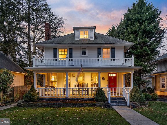 This three-story home has all the charm and upgrades you can ask for. Located in the heart of what the town calls “the wedge” neighborhood. This home sits on a quiet tree lined street, which was newly paved and has an amazing large slate porch. Come sit on one of the four rocking chairs, or the porch swing, all which are included in the sale of this home. Wait to you see what this amazing home has to offer. Walk onto the extra large slate covered porch and into the homes First floor foyer, which features a forming living room or dining room with wood burning fireplace, oversized mantle and long windows allowing lots of natural light into the room. The kitchen area is opened to a family room with a gas fireplace, built in tv, and custom built-in cabinets with two window bench seats. This white cabinet kitchen with new black granite countertop, has high end appliances, a double sink, and additional countertop seating with a 2nd bar sink. Walk past the kitchen you will find, a laundry closet, pantry closet and a half bathroom and stairs that lead you up to an amazing bonus room with additional half bath. This oversized great room features high cathedral ceilings covered with white bead board, recess lighting and 2 skylights. The double French doors lead out to a private 2nd story deck overlooking the backyard where you can watch the sunset. The half bathroom has several custom finishes that make this bathroom unique and a great conversation starter. The second floor features a primary bedroom with en suite bathroom and walk in closet. Three additional bedrooms and a full bathroom. The third bedroom is currently being used as an additional walk in closet. It can be converted back to a bedroom, office or take wall down to make primary room larger. Third floor presents the 5th bedroom with carpet flooring, cedar closet, and built-in desk and a shelving unit. This home features so much more! The finished basement has an additional finished enclosed room and a side entrance from outside. Tankless water heater, whole house generator, two zoned heating and air are just some of the features that make this home a mush see! The two car garage has a new oversized garage door and new flooring. Fenced in large back yard, with outdoor entertainment bar, and tv with brick patio.