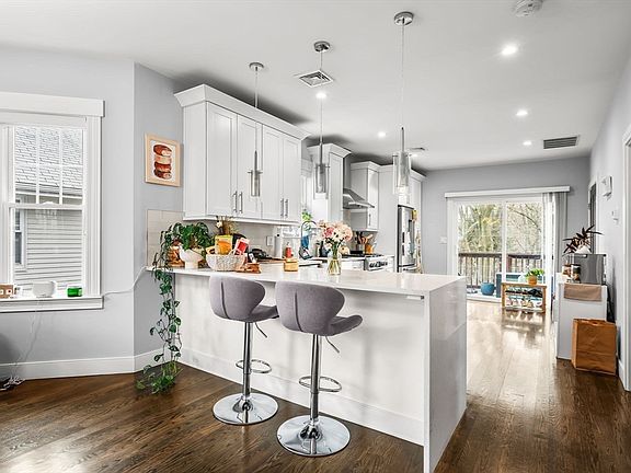 Nestled along the scenic Fellsway, this beautifully crafted 3-bedroom, 2-bath townhouse-style condo offers an exceptional blend of modern comfort with city living. The main level features two spacious bedrooms, a stylishly remodeled full bath, and an open-concept living and dining area with soaring ceilings and abundant natural light. A thoughtfully designed kitchen showcases quartz countertops, JennAir appliances, and ample storage to complement the in-unit laundry area. The crown jewel of this home is the expansive third-floor primary suite, featuring a sitting area, spacious walk-in closet, private full bath, and crawl space for storage. Two private decks provide the perfect setting for daily unwinding, while the large, fenced-in shared backyard offers a peaceful escape perfect for entertaining. Parking is more than ideal, with a 1-car garage and long, shared driveway. Your potential next home is in close proximity to restaurants, shopping, parks, and public transportation.
