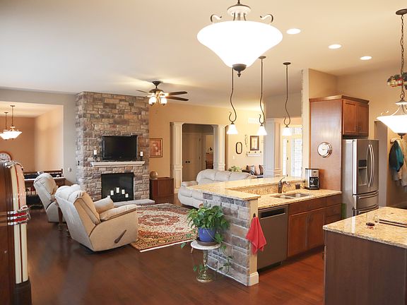- RoomKitchenFeatures: Kitchen Island, Breakfast Bar, Eat-in Kitchen, Custom Cabinetry, Breakfast Room, SolidSurfaceCounter