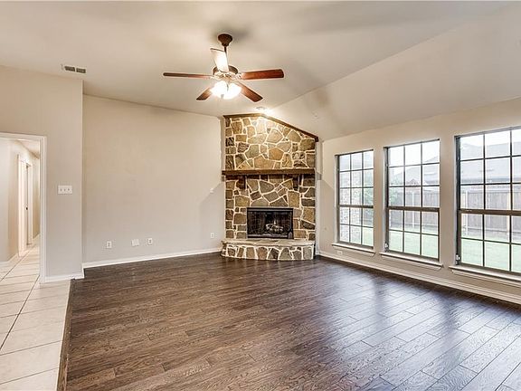 Built in 2007, this Forney offers a fireplace and a three-car garage. Upgraded features include fresh interior paint. A community pool is part of the HOA. Home comes with a 30-day buyback guarantee. Terms and conditions apply.