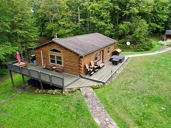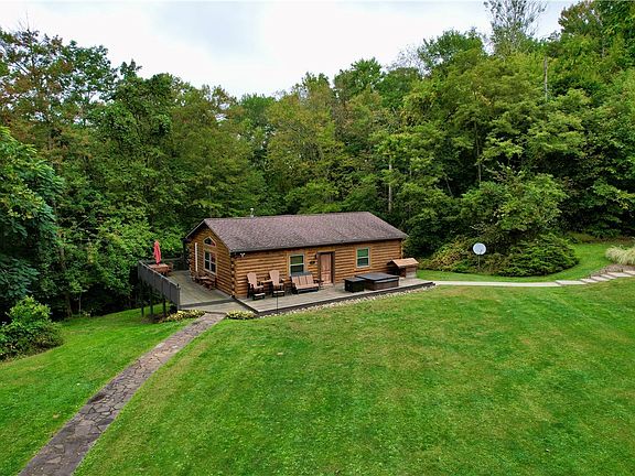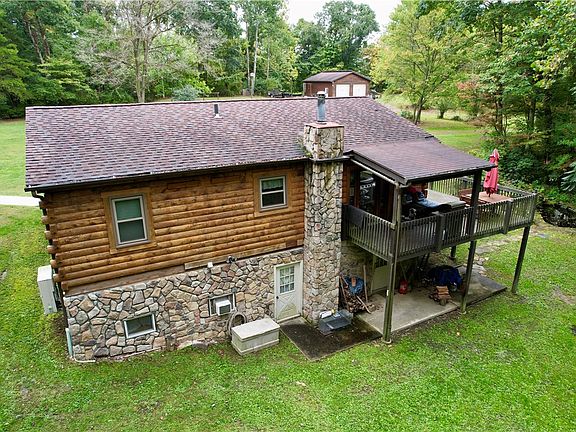 Enjoy privacy and seclusion on 31 +/- acres in Washington County. This amazing log cabin home is nestled on 31 private acres and is highlighted by its beautiful front and side decks, vaulted great room and an amazing inground swimming pool. The basement boasts a wood burning fireplace, bar for entertaining, walkout access to the rear of the house, full bath, and bedroom as well as an additional room that can be used for storage or converted into another small bedroom. Majority of the home's windows were recently replaced, and a Mitsubishi Hyper Heat System was installed in 2021. Property is located less than a 10 minute drive from Three Springs, WV with shopping and restaurants. Current owners absolutely love the home, location and serenity of the property, but have been relocated out of state. *Heated oversized 2-car garage with 10' garage doors *8-kilowatt solar panel system *60 amp genrator break panel with outdoor generator plug in *Seller does not own OGMs