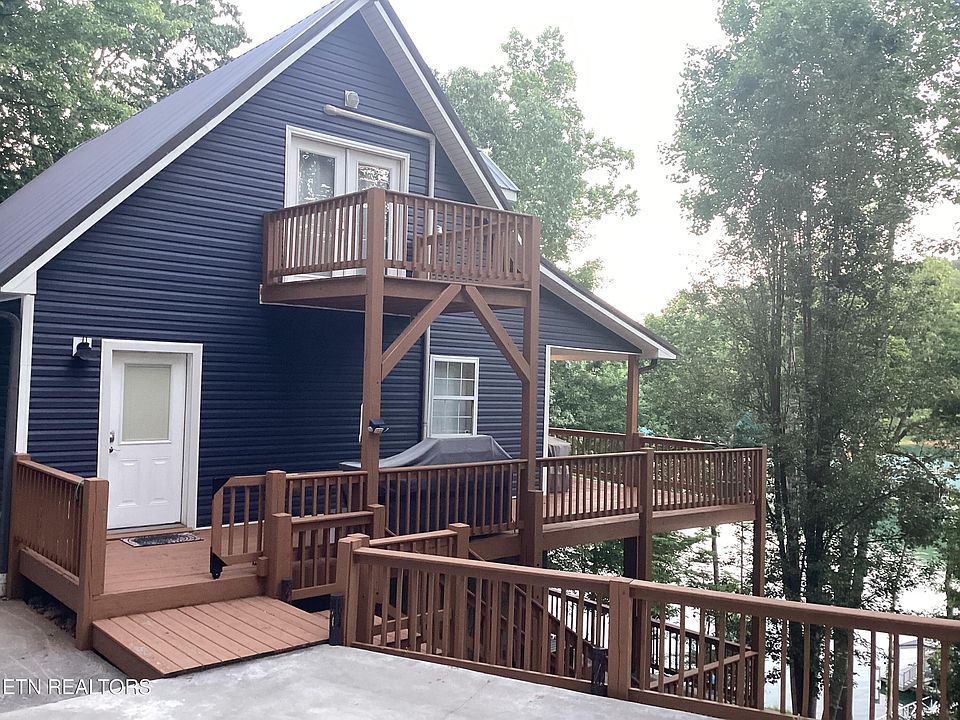 This Norris Lake home is ready to move into and comes fully furnished. You can relax in the no-wake zone of this deep-water cove while enjoying the two-level dock. The home has recently undergone remodeling, including new kitchen cabinets, quartz countertops, tile showers, and a basement designed for entertainment. It features three bedrooms, three baths, and a sleeping area in the basement. Stainless steel appliances are found in the kitchen, with a spare refrigerator in the basement. A main level deck provides a great lake view, along with two smaller decks on the upper level. Concrete steps lead to the lake, along with a concrete trail and ramp. The dock features two boat lifts and three slots for jet skis. The 180-foot shoreline has been stabilized. There is room on the second lot to potentially build a garage for storage. This property is unrestricted and suitable for short-term rentals.