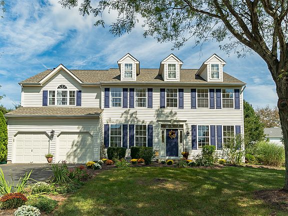 Priced to sell! Welcome to 314 Hedgerow Lane, located in the award-winning Central Bucks School District, on an interior lot in desirable Doylestown Hunt. This sought-after subdivision is within walking to the restaurants, shops, parks, nightlife and community events of historic Doylestown Borough. An inviting 2-story main foyer entry greets guests and opens to a large living room with enhanced by column partitions and loads of natural light. The main floor office features hardwood flooring and built-in custom bookcases, shelving & cabinetry. A formal dining room, complete with chair-rail, is adjacent to the the kitchen (with gas cooking & stainless steel appliances) and breakfast room areas which flow effortlessly in to the family room with gas fireplace, making the entire space perfect for entertaining. Brand new hardwood floors extend throughout the foyer, well-appointed half bathroom, eat-in kitchen and laundry room. Upstairs, the spacious 800 sq/ft main bedroom suite features vaulted ceilings, 2 walk-in closets, sitting room, dressing area & full bathroom with whirlpool tub, double vanity, separate shower & skylight. Three additional generous bedrooms and an additional full bathroom complete the second floor. In addition, a 1000 sq/ft unfinished basement with high ceilings is ideal for future expansion of the interior living space. Outside, the rear yard is lined with growing arborvitaes creating an increasingly private space. As if that all weren't enough--this property features natural gas heat, public water/sewer, no HOA fee, a 2-car garage, 9 ft ceilings and a recently replaced HVAC system (air handler 2015 & condenser 2014). Great access to rt. 202, rt. 611 & rt. 313 and for Philadelphia commuters, is less than a minute to the Doylestown Train Station on the R5 Septa line. Book your appointment today!