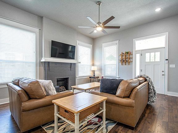 The cutest house on the block! This updated home has it all! An inviting front porch, a circle drive and updates galore! This home was completely remodeled in 2020 to include an open concept with brand new kitchen. New cabinetry, granite countertops, marbled backsplash, new appliances! In addition to new (2020) luxury vinyl floors, the living room is home to a floor to ceiling fireplace complete with gas logs. The primary bedroom was also updated with a beautiful ensuite bathroom. The oversized tile shower includes double shower heads and the vanity features granite counters and double sinks. Enjoy warm summer evenings in the fully fenced backyard with deck. 2020 updates also included a new roof, new hardy board siding, all new electrical, plumbing and ductwork .The HVAC unit was replaced in 2022. Agents, see remarks.
