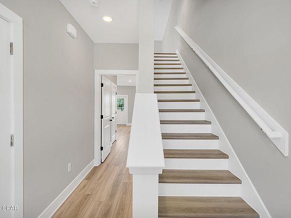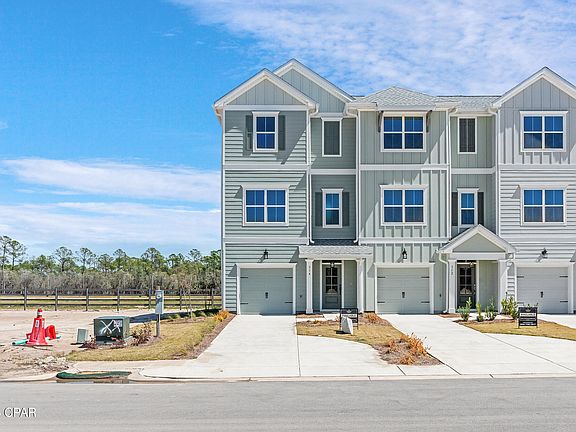 Seagate at Clara is a new townhome community nestled in the vibrant city of Panama City Beach, FL. Located approximately 1.4 miles from the white sands of the Gulf of Mexico and just minutes from Pier Park, this three story End Unit townhome features board and batten exterior and covered entries. Lovely screened in porch on main living level affords year-round living. One car garage provides a great space for storing beach essentials. This open concept townhome boasts a stylish kitchen with a large island perfect for entertaining. The elegant Owners Suite is designed with comfort in mind showcasing a large walk in closet and double-bowl vanities. The community pool is opening in May with cabanas, lounging, seating and grilling stations. There is a dedicated dog park. Short term rentals permitted.