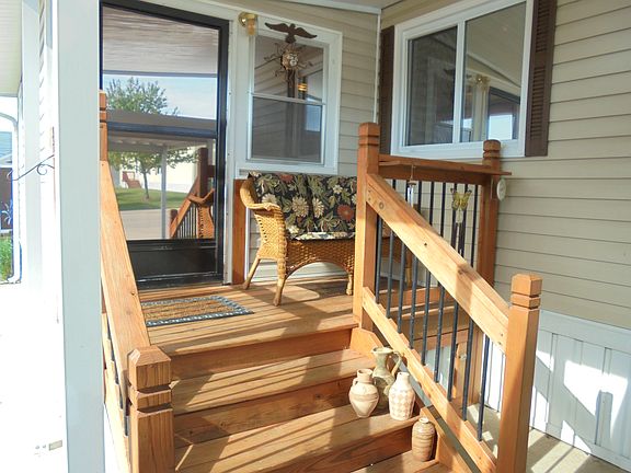 1976, 14x66 single wide manufactured home for sale in the prestigious adult community of Lazy Acres in Belton, MO. This home has an open living room and kitchen area with two bedrooms, one bath, laundry area, and an office. The many upgrades in this home include vinyl double paned windows, a covered entrance deck, an 8x12 enclosed porch, and a carport. The carpet in the living room and the master bedroom is less than a year old. Laminate flooring covers the hallway and office areas. Ceiling fans are installed in every room except the kitchen and bathroom. There is central heating and cooling with a gas hot water heater. The bathroom floor is tiled as well as the wall area around the vanity. There is a combination bathtub/shower. The storage shed is an 8x10 with electricity and shelving.