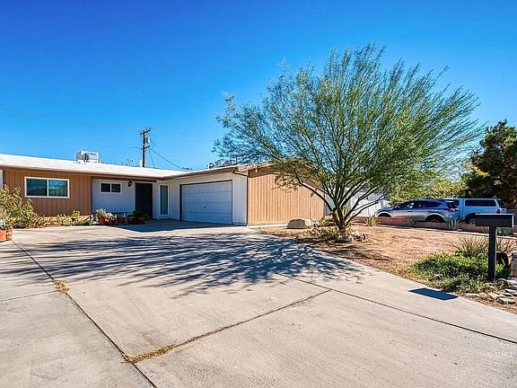 AVAILABLE TO SHOW ONLY AFTER ZILLOW APPLICATION HAS BEEN SUBMITTED so we know you're serious and actively looking. Currently tenant occupied please do not disturb tenants. The low maintenance front yard features a mature well sculpted tree, stargazing rock and desert friendly plants. Sections of the front exterior have been freshly painted along with all of the fascia board. The entry opens up to the dining room with tile floors that flow into the kitchen. The kitchen offers solid surface formica countertops, large dual basin sink, oven, hood-vent and refrigerator. The spacious living room is flooded with natural light from the oversized sliding glass door. Hallway has tile flooring and many storage closets. The guest bedrooms have carpet flooring and are decently sized. Guest bathroom has been updated with newer fixtures, vanity and tub/shower surround. A large main bedroom suite with a custom walk-in shower, newer vanity and fixtures. The rear yard is full of possibilities and low maintenance with the large covered concrete patio, mature shade trees and rock. The southern side yard has been concreted and has access to the garage. The energy efficient windows are only a few years old. Evaporative cooler and the water heater are almost brand new! All major home appliances included, with a new Washer and Dryer. Nearby food, convenience stores and the Elks Lodge! Come take a peek! One year lease, tenants responsible for all utilities. All pets welcomed with additional $25 monthly rent per pet. Security deposit due before move-in, no exceptions. No smoking allowed. Not accepting applicants with a credit score of less than 600. Must come see the property in person to be considered! Must provide 2 years proof of employment, 3 months of income, and proof of credit score/history. Must submit Zillow application before showing.