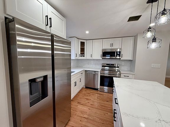 Remarkable Raised Ranch located in one of the most sought-after locations in Brockton. All renovated with 5 bedrooms, 2 full baths, Finished basement, which appears to have been occupied as a Two-Family home in the past. The interior features an Open floor layout, Custom built white cabinets w/ soft closing, Quartz countertops, Kitchen island w/ Pendant lights, Backsplash, Stainless steel appliances, freshly painted throughout, Gleaming Hardwood flooring, beautiful light fixtures, and remodeled bathrooms w/ tiled showers and flooring, beautiful vanities and light fixtures. The exterior features maintenance-free wood siding, a beautiful Deck, a 2-car garage, a nice backyard etc. A Must See as there are lots more features to show. Open House Sat Dec 21st, 12:30 to 2pm.