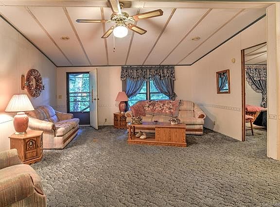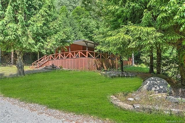 Peace and relaxation are the theme for this immaculately maintained double wide home on 5 beautiful acres in near Max Patch in Hot Springs. Home features 3 bedrooms two baths and has 60' by 8' wrap around covered front porch to enjoy the rushing creek that runs the front of the property with several small natural waterfalls on 5 acres of beautiful mountain property. Home would make a great get away or permanent residence and potential for vacation rental. Live in this home and build your dream home while listening to the rushing stream. Motivated seller.