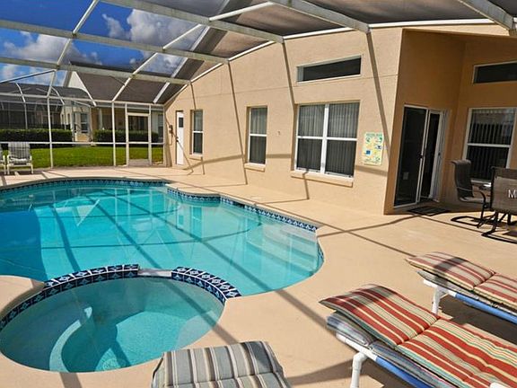 Beautiful 5 bedroom home with feature pool with no rear neighbors in Davenport, Florida. This home is move in ready and is being sold with all of the furniture. Just bring your clothes and toothbrush. Large open kitchen with wood cabinets, spacious master suite, split plan, large closets and a whole lot more. Bedroom 5 is set away upstairs for privacy. Property has had a good rental history for those looking for investment purposes.