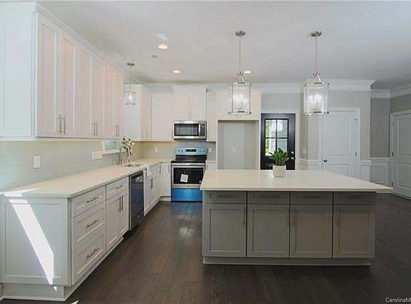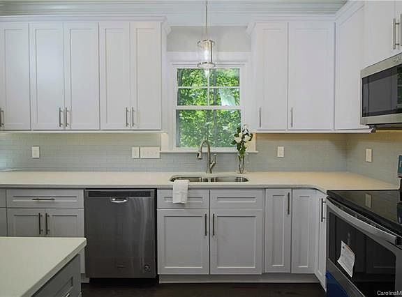 Stunning new colonial inspired ranch located minutes from Afton Village, Downtown Concord, and less than fifteen minutes from Charlotte! From the captivating crown to the wooded back lot, this brand new home is ready for your imagination. Some of the numerous quality features include; high ceilings with beautiful crown, hardwood floors, quartz counter tops, upgraded lighting, and new systems throughout. Outside you'll find this home tucked (sloped down and back for privacy) into almost a ½ acre private wooded lot, a fully insulated two car garage with shop area, perfect for your lawn mower and tools. The laundry room offers access to all but also a functional access through the master closet. The fresh new kitchen opens into the dining area and living room, perfect for entertaining. With lots of natural light, ample closet and attic space, this home has all the new features you want, without an HOA, but close to everything! Ask about the garage paint!