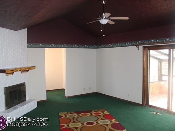 - Living Room: Fireplace, Carpet, Sliding Glass Door