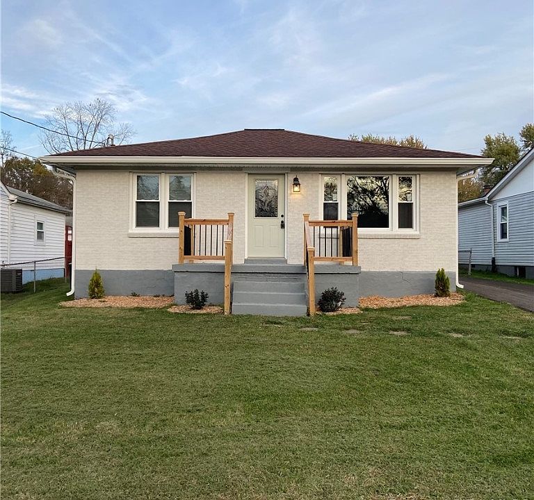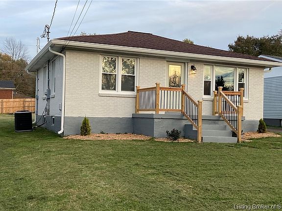This 2 bedroom, 1 bath home with a full basement has been extensively remodeled and is located in a nice quiet country neighborhood. This home is in a great location not far from downtown New Albany shops, schools and restaurants. This turn key move right in home offers all NEW laminate flooring, light fixtures, ceiling fans, kitchen cabinets with laminate counter tops, tile back splash, stainless steel appliances, sink with faucet, hardware, bathroom vanity with faucet, mirror, vinyl flooring, bedroom/closet doors, back door, garage door with opener, 200 amp service box, all windows, paved driveway, gutters and down spouts, deck handrails on front porch with new entry door. Freshly painted home inside and out. Partially fenced in with privacy fence in back and chain link down sides. Water heater 2021, Furnace 2013, AC Heat Pump 2022, Roof 2017. Seller will provide a a one year home warranty for buyer.