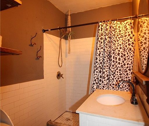 covered front porch. Nice rear deck. Family room with vaulted ceilings. Farmhouse sink and open shelving in kitchen.