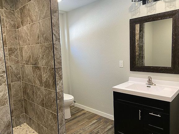 For Sale newly/completely remodeled 5 bedroom + 3 bath home This home is located in a wonderful low-traffic family friendly neighborhood. Interior Large spacious kitchen with center island with counter seating, granite countertops, custom cabinets, large storage pantry and upper and under multi colored counter lights. Sliding glass doors with access to new back deck. The living room is spacious with a large window for natural light. The main floor master bedroom features an ensuite master bathroom with private bath, large tiled shower, and large walk-in closet along with attached laundry room. There is one other bedroom on the main floor that can be used as a guest bedroom or office if you choose. The guest bathroom on the main floor is a full bathroom. The finished basement has high ceilings and a large open living area ready for your entertainment needs or kids play area. The basement also contains the remaining three bedrooms with all new egress windows that give lots of natural light. An additional washer/dryer hookup is located in an alcove in the basement living area for your convenience. The basement also includes two large storage rooms and furnace room with a brand new furnace and new on-demand hot water heater. This home has been significantly remodeled to include brand new central air and heat, 100% new plumbing and 80% new electrical that includes new can lighting throughout the house. The garage contains extra overhead storage along with back door to the backyard. Exterior The exterior includes a newly constructed covered front porch featuring cool overhead dimmable can lighting and new concrete. In the back of the house you will have a newly constructed multi-level deck with metal spindles. A storage shed is conveniently located in the backyard with easy access for all your lawn and storage needs. New landscaping has been placed around the house including a new custom front sidewalk to your newly constructed front porch. The back yard has a lot of space and solitude for you. Call or email to schedule your private showing.