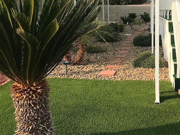 Updated mobile home in the Exeter Adult 55 plus park. This clean, bright and charming home has been updated through out which include the roof, flooring, counter tops, bathroom cabinets and vanities. and the paint inside and out. The home also features vaulter ceilings in the living room, open floor pan, large covered patios, multiple vehicle car port and has great curb appeal with synthetic grass and beautiful landscaping. T