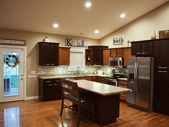 WOW! Here is what you have been looking for! Spiffy newer three ranch style home with two car attached garage situated on 1.26 acres M/L on the edge of town! Desirable floor plan with open concept boasts hardwood floors and vaulted ceilings in the main living area. All kitchen appliances to stay. Master suite offers master bedroom with walk-in closet and master bath with Whirlpool tub! Main floor laundry room with washer and dryer included. Finished lower level family room offers tons of additional space! Basement offers stub-ins for an additional bathroom to be added and an egress window if you need an additional bedroom. Outdoor space continues to impress with patio doors leading you to your backyard with a two tier composite deck and vinyl privacy fencing. Enjoy a gorgeous sunset from the front porch!