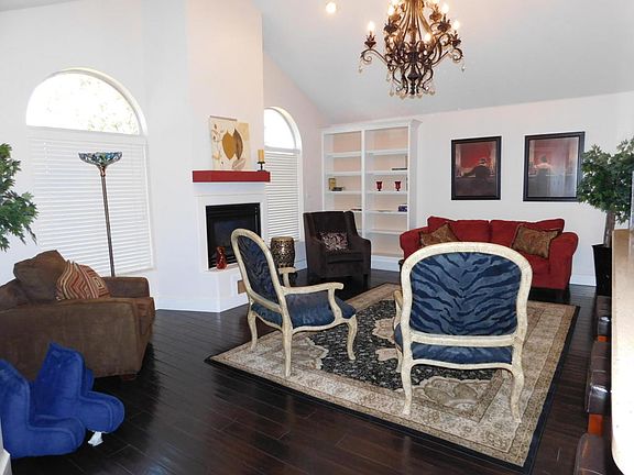 This Beautiful Trailwood Home has many fine appointments throughout and has much to offer! The Spacious Living Room has Vaulted Ceilings, Fireplace is open to the kitchen. Hardwood flooring throughout all but 2 bedrooms. The Kitchen has Flat Range Electric Stove, Double Door Refrigerator with the Ice/Water Feature, Dishwasher, Disposal, and plenty of cabinetry. The Dining area has Arcadia Doors that lead to the Covered, Tiled Patio, and spacious backyard, great for entertaining and having BBQ's! The Bedrooms are Spacious with Plenty of Closet space and Ceiling Fans. Master Bedroom also leads out to the Tiled Patio and Backyard. Must see to appreciate!