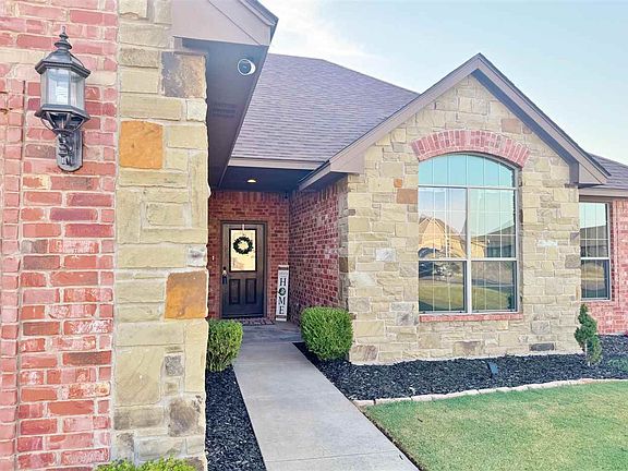 You will fall in love with this fabulous, better than new home in Cache’s up and coming Mountain View Meadows Addition. Quaint landscaping and a brick mailbox welcome visitors & infuse curb-appeal at this wonderful 3 bedroom, 2 bath, 2 car garage home that is less than 11 years young & boasts approximately 1500 sf of living space. The eat-in kitchen features granite countertops with tumbled stone backsplash, matching stainless steel appliances with a radiant smooth cooktop range. Stunning knotty alder cabinetry with crown molding finishes and Spanish arches throughout perfectly round out the design details of the spacious, open concept flow of the home. The living room offers a wood burning fireplace (that has never been used) that will accommodate a flat screen TV or display your favorite artwork, overhead, a beautiful custom mantle shelf, and a door leading to the covered back patio that overlooks the wood privacy fenced back yard. A cute meandering rock walkway leads to a firepit and concrete pad with a pergola. Imagine! You may roast marshmallows and a warm Oklahoma evening, gathering around your new firepit or comfortably sit on the covered patio on a beautiful Oklahoma morning to enjoy your morning cup of coffee, entertain guests or have family BBQs or take a stroll through the neighborhood to enjoy the scenic Wichita Mountain backdrop. Wow! Located in the very desirable Cache school district, nestled just west of Lawton, away from the hustle and bustle of the city yet close to the new Target & TJ Maxx shopping center, Goodyear Plant & Ft Sill. Welcome Home! Please call or text Stefanie Johnson at 580-583-5238 for more information or to set up a showing.