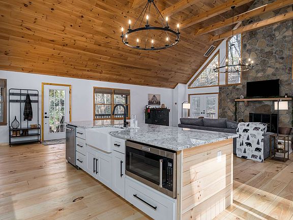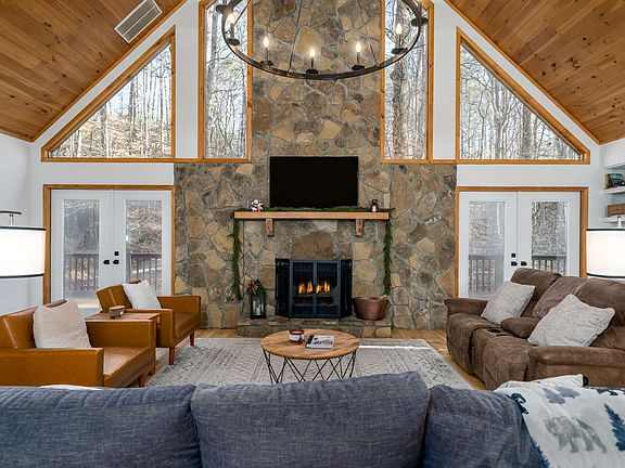 Immaculate, turn key furnished cabin just minutes from Downtown Ellijay but sits privately and quiet so you hear nature at its finest! Would make the perfect Vacation Rental! Wheelchair accessible front door. This detail oriented cabin just had a complete makeover! Perfect mixture of wood & sheetrock w/ wood accent beams. Stunning kitchen w/ all soft close cabinets with plenty of storage, granite countertops, farmhouse sink, stainless appliances are premium Kitchenaid & 11 ft island. Additional half bath w/extra storage on main floor. Cabin is the ideal home for a big family from the walk around deck to open floor plan. Gorgeous floor to ceiling stone fireplace (gas or wood burning). Wide plank pine floors. Master on main complete with king size bed and room to spare with a spacious walk in closet. Tile shower big enough for 2 and his/her sinks. Large loft has one of the best views for additional sleeping or game room. Lower level offers 3 bed, 2 bath, living room and kitchenette for possible mother n law suite. Beautiful flooring is luxury vinyl plank-waterproof. 1.3 private acres. BONUS! Newer roof, whole house generator and new septic system, new water heater, all paved roads.