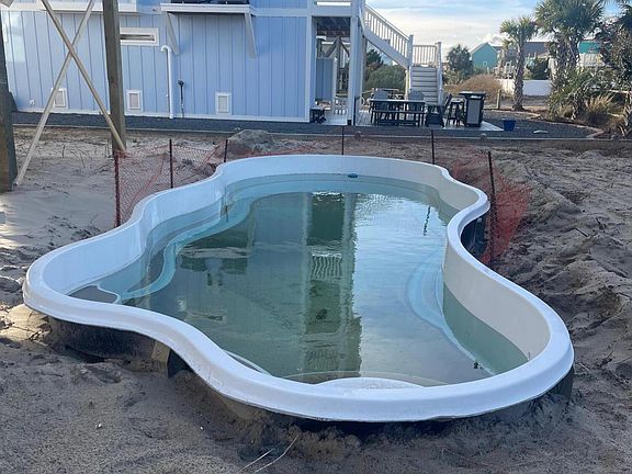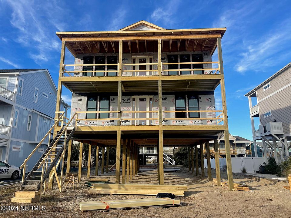2ND ROW BEACH HOME IS COMPLETE! Buyer's made many upgrades that are not reflected in the final sales price that include: Metal Roof, Landscaping, Concrete around pool, Garage Doors, Fireplace, and many other items. Inverted floor plan will offer an open Kitchen, Dining, and Living Area. The Kitchen will offer ample amount of white cabinets with 48'' upper cabinets as well as a gas range. GE kitchen appliances plus washer and dryer included. The Owner Suite is located just off the Living Room. Lots of covered porch/decks to enjoy all the coastal backdrop has to offer. The main level of the home will offer 3 bedrooms and a spacious 2nd living area overlooking the rear deck. Enjoy the day and evenings lounging by the pool. The builder is planning black doors and windows, white board and batten exterior and including one garage enclosure and storage area under the house plus an Outside Shower. Just imagine all the future memories that will be made. Similar home being built at 1040 Ocean Blvd West with a 2ft bump out on the living room side of the home. *PLEASE NOTE: Elevations, plans, and specs are subject to change due to continuously changing availability of construction materials. Completion date is subject to change.* Looking for an investment, here it is with great rental potential!
