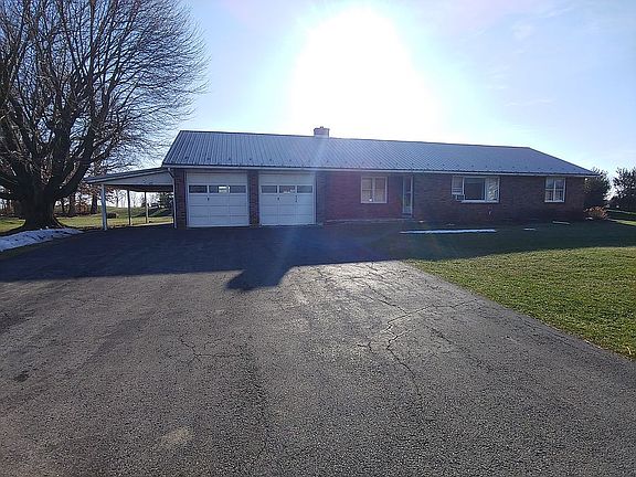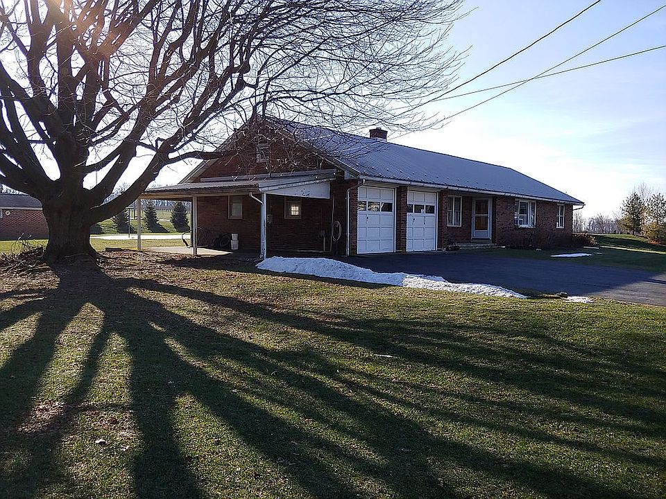 Here we has a nice, well constructed 3 bedroom brick veneer ranch home. It has a nice front, side and back yard area. It has a heated oversized two car attached garage with an additional carport and an additional out building! Along side the house is a nice mature shade tree to put a picnic table under for future get-togethers for when the times allow us to do so again. Large eat in kitchen with plenty of cabinet space. Large living room area. Full attic and basement! Hardwood floors in the bedrooms and hallway and I think under the living room rug too! Newer metal roof too! Since being built, the oil boiler has been replaced. The well pump was replaced in 2014. The house is in just about move in condition.