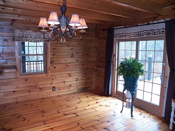 What a place! Dream full timer frame log cabin sets on a very private rolling lot on a quiet road only 12 minutes to Concord. The home is well built and maintained well. Features SS Kitchen Appliances, 3 Bdrm & 2 Bath, cathedral ceilings in Bedrooms, hearth with Pellet Stove in Grand size living room & propane Stove in place in the mostly finished basement. Home has large side deck. Front & rear covered Porches, 2 car garage under Garage and carport for 2 as well, wired for Hot Tub & extra supports to support a hot tub on the farmers Porch. Home also comes with Generator quick connect panel & Generator stays along with window ACs. Outside features rock walls, 2 apple and 2 peach trees, gazebo and lot backs up to a stream. There are 2 out buildings for storage and gardening equipment. Bonus: 30X40 free standing metal garage steel framed with 2nd level. This building has a lean to 40' long and is insulated and heated by wood stove. The AG Pool, Gazebo & Shed stay as well. Property may fill all your needs if you love peace and quiet plus room for all your outside projects. Set your appointment while it lasts!