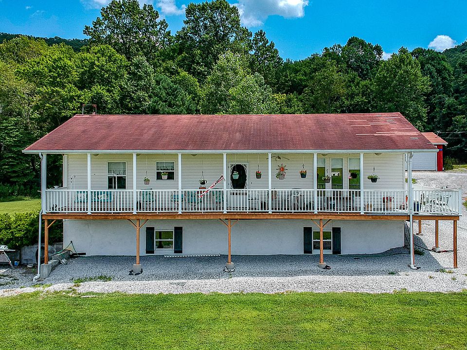Find yourself in the bliss of the country when you move into this 2 property parcel on a sprawling 8.57acres with farm and horse potential! This home's location is phenomenal with sequestered feeling that affords you a feeling of total privacy, set back from the road with lush foliage that separates you from your neighbors. Inside the main house, you will love the open great room, kitchen and dining area which is surrounded by many windows capturing wonderful views from almost every room, with beautiful laminate wood flooring underfoot. The large kitchen is a joy to work in, outfitted with ample cabinetry in addition to a spacious frosted glass door pantry and center island with bar seating. Step outside onto the large covered front porch or rear deck for endless hours of relaxing overlook