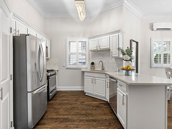 With hardwood floors throughout and dramatically high ceilings with crown molding, the home exudes both grandeur and warmth. The smart air-conditioning system allows you to control the temperature with ease from your phone. Additional touches include a recently renovated bathroom, a charming laundry room door, and a pantry full of personality. Every closet is fully customized for your convenience.
