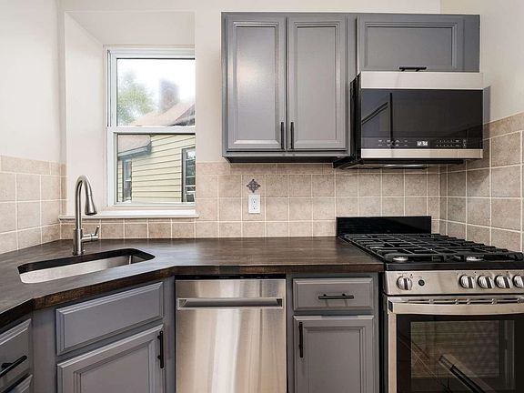 Bright, cozy 2 bed / 1 bath condo on the 2nd floor of a handsome red brick building. This thoughtfully renovated apartment features high ceilings, LED lighting, and ceramic tile & luxury plank flooring. The new kitchen includes butcher block countertops, tile backsplash, undermount sink, & under cabinet lighting. Equipped with brand new stainless steel appliances: ultra-quite dishwasher, slide-in gas range, over-the-range microwave, and a gorgeous four-door countertop depth refrigerator. The bathroom is finished with ceramic tile floors, tiled tub surround, a generously sized floating vanity with large drawers, and a big illuminated mirror with a built-in defogger. Windows in every room fill the apartment with natural light. Smart floorplan with bedrooms on opposite sides of the apartment, separated by a wall of sound mitigating closets. The building features laundry facilities, bike racks, and private storage for each apartment. Condo dues are low. Pets are welcome.  Conveniently situated on the Union City/Jersey City Heights border. Located nearby: Hoboken's 9th St light rail at the foot of Congress St, countless bus routes, loads of restaurants, the Central Avenue shopping district, and huge Washington Park. Super easy commute to NYC & Hoboken. Jersey City is literally across the street.  This condo’s a gem, and a steal! Come, check it out for yourself!