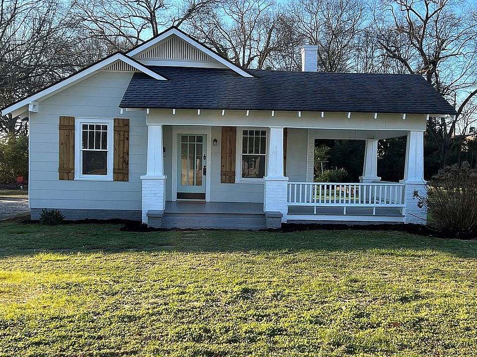 Newly renovated! and within walking distance of beautiful Historic downtown Greer, convenient to Trade Street, dining, amenities, shopping, Downtown Greer City Park, and the library, 314 Pelham Street is move in ready! This beautiful craftsman 2-bedroom and 1-bath home is located on a nicely sized lot and has been completely updated. Enter the front door from the wrap around porch into a large open great room with a decorative fireplace, 9-foot ceilings and new luxury vinyl flooring. Highlighting its Craftsmen’s feel is an open floor plan with a new gray themed kitchen, white shaker style cabinets, over and under lighting, granite counter tops, luxury vinyl flooring, and new stainless-steel appliances and fixtures. The full bath features a new vanity with nickel fixtures, new subway tiled tub/shower combination, glass block window and luxury vinyl flooring. The 2 spacious bedrooms have great natural sunlight, 9-foot ceilings, with new interior doors through-out. Also, a new HVAC system for all the comfort you need. Come and take a look at the bunnies from the wrap around front porch equipped with a ceiling fan for comfort. Make this wonderful home yours!