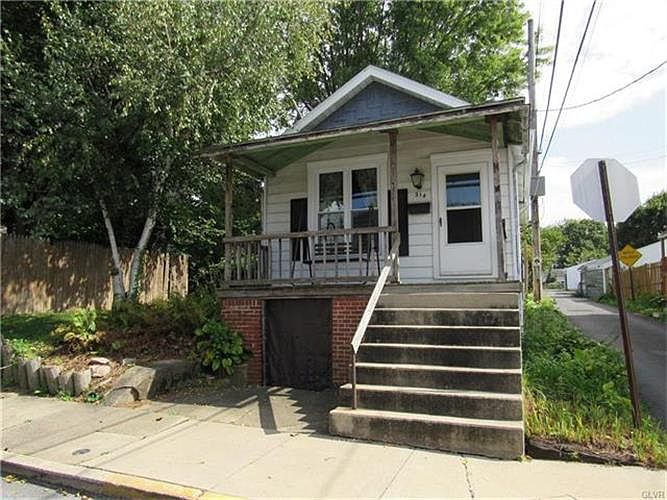 Stop in and make your offer on this Cute 2BR Bungalow Style Raised Ranch, sitting on a large corner lot with oversized detached garage, plus side parking pad and covered front and back porches. The main level of this home features a large Living Room with bay window, carpet floors and pellet stove: Eat-In Kitchen with electric stove, refrigerator, wood cabinets and door to back yard; Bedroom with dual closets, carpet floor and ceiling light fan. The Lower Level offers a full bath with shower stall, sink vanity and laundry area, a 2nd bedroom with wall and floor lighting and closet and a den study family room or potential 3rd bedroom with drop ceiling and walkout exit to the front exterior. All windows and gutters downspouts (except for front porch) were replaced in 2017. Oversized garage has workshop area and additional storage.