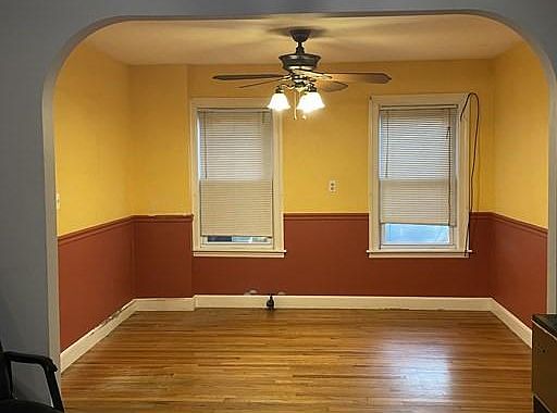 Lovely 2-BR apartment on the first floor. Living room, dining room, kitchen with updated cabinets, two bedrooms. Coin-op laundry in basement. Off street parking. No pets.