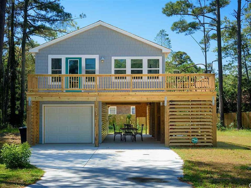West side charmer! Built in 1974, this darling 3 bedroom cottage originally rested on a semi-oceanfront lot in Kitty Hawk. It was moved and placed on new 8x8 pilings, clad with new vinyl siding, given a new roof, fresh decking, a one car garage, & new septic tank/field in 2016. 314 Remele is within walking distance to the new Publix grocery store, Lowe's, Prof Hackett's Miniature Golf, & the 1st street beach access where parking is available (see aerial picture). Finely appointed furniture & decor, durable luxury vinyl plank in the common areas, cozy carpet in the bedrooms, & fresh paint throughout all complete this rarely found package. A versatile property with multiple options: a weekend getaway, year round home, or weekly rental. It just became possible to find an affordable home on a quiet cul-de-sac with easy access to the beach & plenty of outdoor space to enjoy all the Outer Banks has to offer. Don't miss out on this one of a kind find!