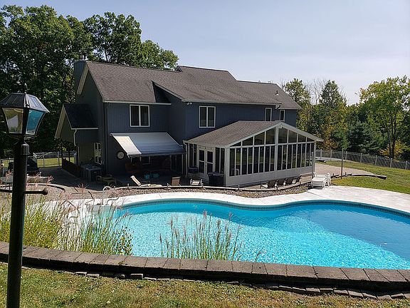 Large home with on a private resort like setting on 6.1 acres. Three very large bedrooms. In-ground pool and playground with fenced yard. Showing for a pre-qualified buyer by appointment only,