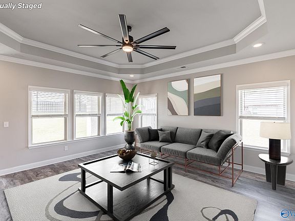 - Features: 10’ + Ceiling, Ceiling Fan(s), Recessed Lighting, Tray Ceiling(s)