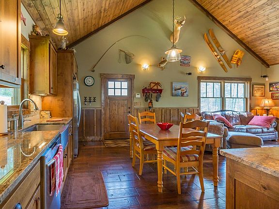 This guest cabin is the perfect place to enjoy the lake right now! Private drive takes you to this gently sloped compound lot with guest cabin already in place. Cozy great room with master bedroom, spacious bath and full loft bedroom above. Enjoy the views to the water from the expansive covered porch with rustic rhododendron railings or sleep extra guests in the finished lower level with room for sleeping quarters, family room area, full bath and plumbing in place for a full kitchen. Homesite cleared for main house which can be built anytime. Beautiful T&G covered gazebo and floating dock in place. Fire pit and plenty of room to enjoy the outdoors. Private and quiet location for your family compound!