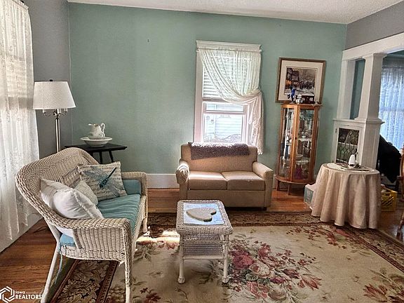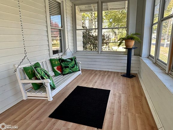 Craftsmen bungalow with appeal! This 2 bedroom, 1 bath home has some outstanding features such as; hardwood flooring, columns with bookcase in between the dining room and living room, bench seating under the large dining room window. Cute alcove in the kitchen with windows surrounding it for a breakfast table. Both bedrooms are spacious and have ample closet space. Bath has a walk-in shower. The front porch has been enclosed and features a porch swing and room for extra seating. Home has metal siding and replacement windows. Fenced rear yard and a carport. many planting around the home and a couple mature trees. Close to elementary school, downtown square, and walking trail.