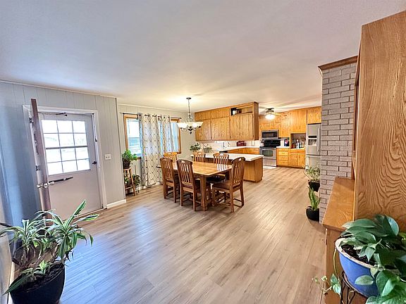 This beautiful brick home features 3 large bedrooms, 2 full bathrooms, an attached 2-car garage, a massive living room with fireplace, and extra seating area at the kitchen bar! 1876 sq ft MOL and on 6 city lots (.48 acres± )! The north lot has some RV parking or build a shop! Covered back porch with storm shelter close by! Spacious backyard with fence and 2 storage sheds. New Roof recently, added attic insulation keeping those energy bills LOW, Vinyl windows for low-E, HVAC in 2021, Luxury vinyl flooring and paint 2024! All the projects are complete. Check this house out today!
