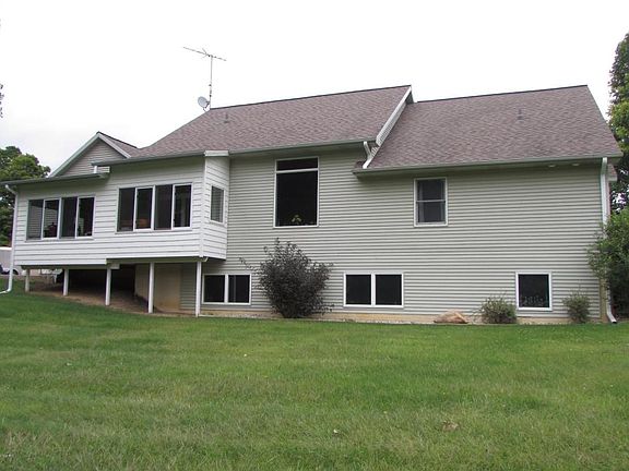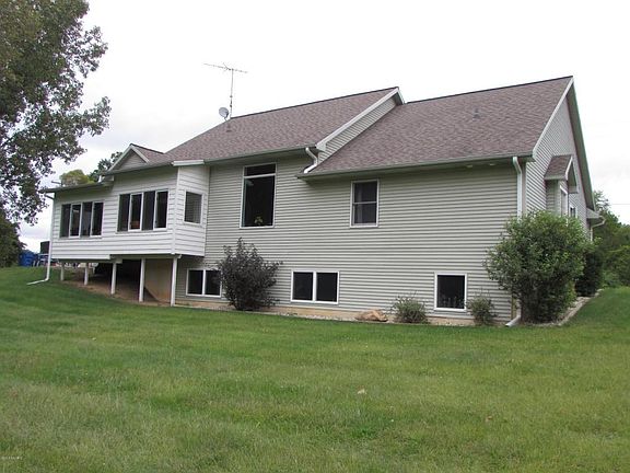 Beautiful ranch home with beautiful setting. This home offers vaulted ceiling in LR with expansive view of the 3.18 acres, kitchen with pantry and all stainless steel appliances, master suite offers walk-in tiled shower and garden tub. Lower/basement level offers full kitchen and yes more stainless steel appliances. the fourth bedroom third full bath and large family rec area stereo surround sound with fireplace. In floor heat in lower level kitchen and new three season room. Some woods in the b ack. Lots of wildlife. Currently set up for propane but natural gas brought to property
