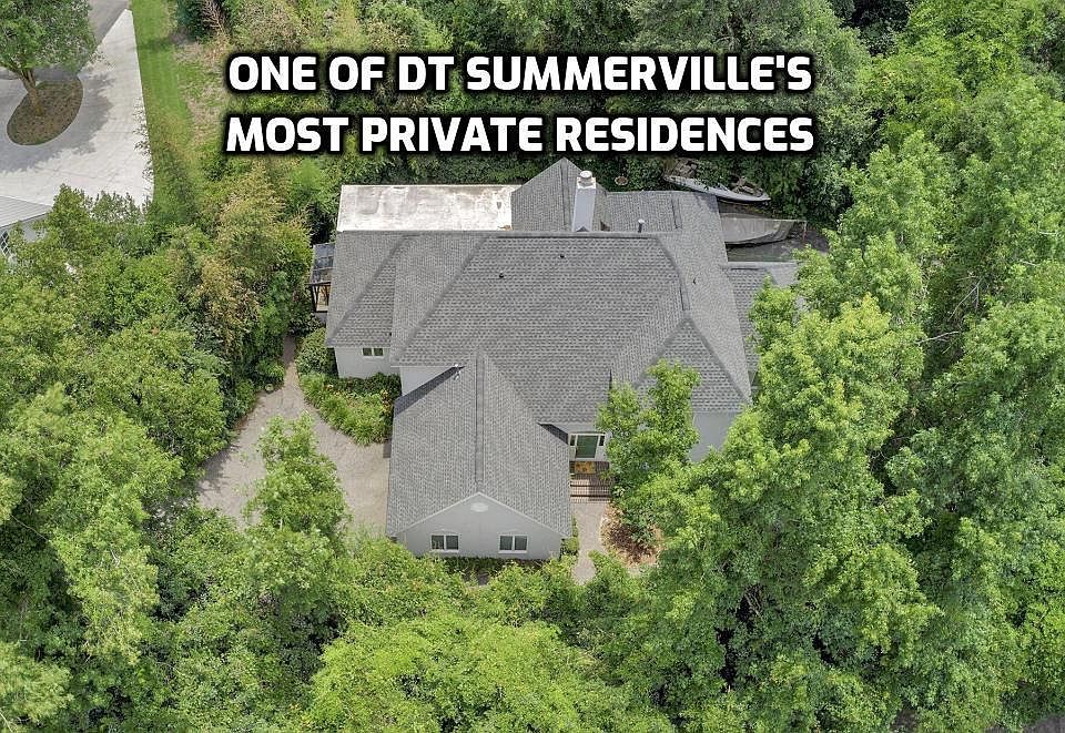RARE opportunity to own a large executive home located on one of the most private lots in DT Summerville. 314 S Hickory is tucked away among mature trees at the end of a high half acre lot with no thru traffic. As you enter the home you are greeted with a large foyer/hallway that leads to the office, master wing, and living room. The living room features a fireplace , cathedral ceilings, large picture windows, and access to the screened in porch and patio. The master wing features walk in closets, HUGE bathroom, and large bedroom. Off the living room is the entertainment bar , formal dining, and eat in kitchen. The kitchen is a dream with custom cabinets, granite countertops, and high end stainless steel appliances. Off the kitchen accesses the year round