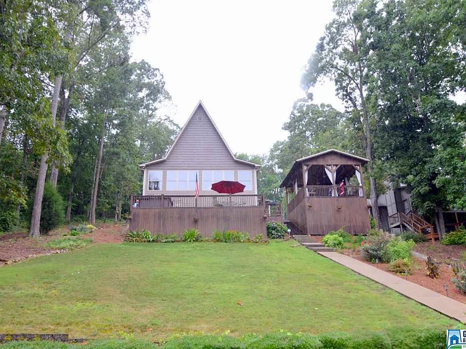 LAKE LIFE IS YOURS! What a great lot with deep YEAR ROUND water and a covered boat dock ready for your pontoon. Ready for summer fun and relaxation on the GYNORMOUS and fantastic new, covered veranda? This fantastic A Frame includes hardwood and ceramic floors, not to mention, beautiful granite counter tops to make your open kitchen dazzle. Put your boat in just around the corner at the community boat launch and park or swim in the neighborhood pool. Tennis courts are also available just down the street for extra family fun. Master is on the main with a full bath downstairs. Two bedrooms upstairs with a great large bath. Not many of these perfect lots left with deep water for year round lake living. Also make sure you peek in the closets for all the hidden storage space. Attic is completely floored with power for even more space. Hurry this one will not last long.